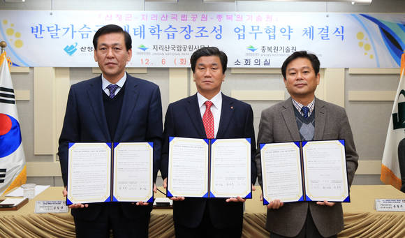 산청군은 6일 허기도 산청군수와 김임규 지리산국립공원사무소장, 송동주 종복원기술원장 등이 참석한 가운데 종복원기술원과 반달가슴곰 생태학습장 조성에 관한 업무협약을 체결했다.