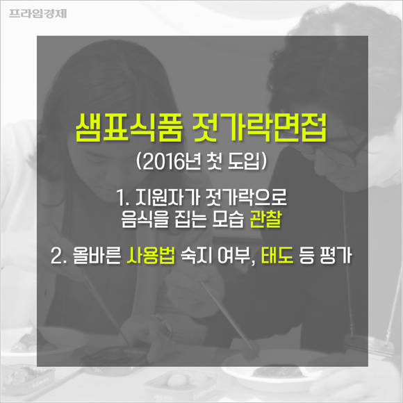 김서인 샘표 인사팀 이사는 "우리나라 젓가락문화는 배려와 나눔의 정신이 깃든 고유의 식문화"라며 "지원자들이 샘표의 기업철학인 나눔과 배려를 젓가락면접을 통해 공감할 수 있도록 도입한 것"이라고 설명했다.