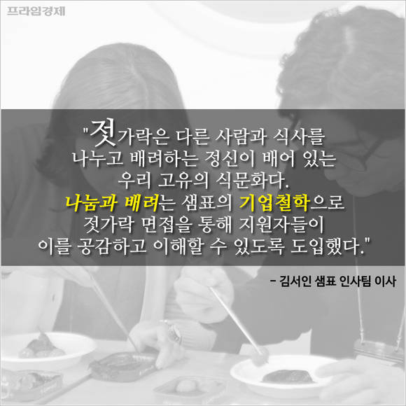 '젓가락질 잘해야만 밥을 먹나요'라는 히트곡 가사가 무색해진 상황에서 샘표의 독특한 면접 스타일이 신선한 바람을 몰고 올지 지켜볼 일이다.