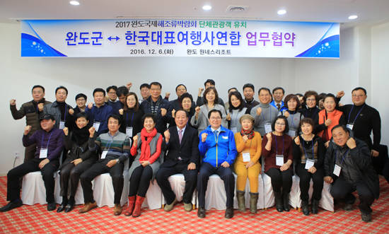 [프라임경제] 전라남도 완도군은 '2017 완도국제해조류박람회' 성공개최 및 단체관광객 유치를 위해 6일부터 2일간 한국대표여행사연합회 회원사(회장 정후연)를 초청해 팸투어를 실시하고 MOU를 체결했다.