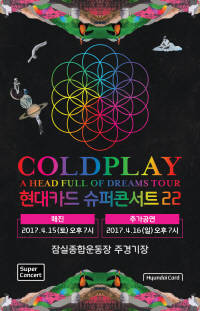 [프라임경제] 현대카드(대표 정태영)는 2017년 4월15일 1회 공연이었던 '현대카드 슈퍼콘서트 22 콜드플레이'를 2회 공연으로 추가 진행한다고 12일 밝혔다.