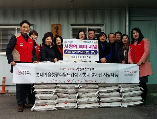 [프라임경제] 롯데아울렛 광주월드컵점(점장 김태회)은 지난 12일 양3동 주민 센터에서 '사랑의쌀 나눔 행사'를 진행했다.