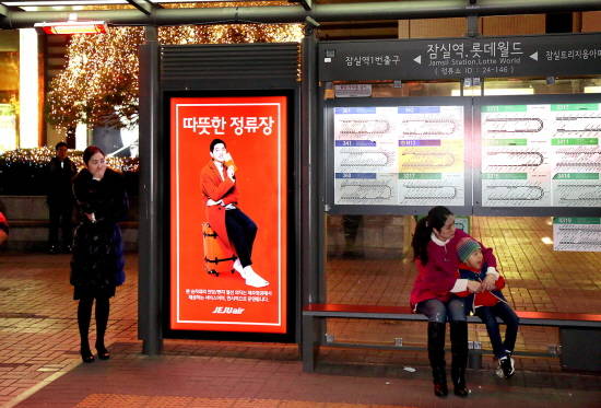 제주항공은 최근 서울시내 건대입구역, 잠실역, 신논현역 3곳의 버스정류장을 선정해 천정과 의자에 히터 및 열선 등 온열장비를 설치했다. 이 설비는 내년 2월까지 한정적으로 유지된다.