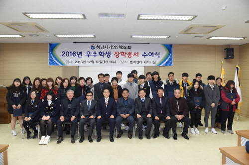 [프라임경제] 하남시기업인협의회(회장 이영환)는 13일 하남벤처센터 세미나실에서 학생과 학부모등 50여명이 참석한 가운데 2016년도 장학증서 수여식을 진행했다.