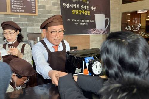 [프라임경제] 송재천 광양시의회 의장이 중증장애인 운영 '드림카페' 1일 명예점장으로 활동했다.