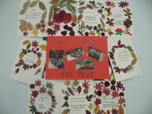 이날 한글교육을 받은 10여명의 학습자들은 선생님의 도움을 받아 각자 자신이 쓴 시에 가을에 모아 둔 낙엽을 활용해 예쁜 시화를 만들었다.