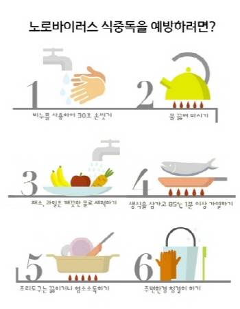 노로바이러스 식중독은 화장실 사용 후, 음식 조리전, 외출 후 비누를 이용한 손씻기의 생활화, 마스크 사용, 손소독제 이용으로도 충분히 예방할 수 있다.