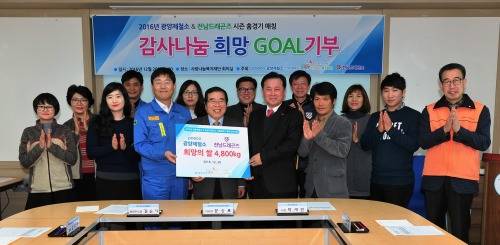 광양제철소와 전남드래곤즈, 사랑나눔복지재단은 '감사나눔 희망의 골' 기부 약속을 지키고자 지난 2012년 10월 위 내용을 MOU로 체결한 바 있다.