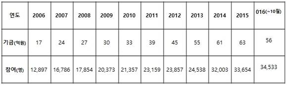 현재 사원에서 CEO까지 34,533명이 참여하고 있으며 지난 10년간 총 모금액은 450억원에 달한다.
