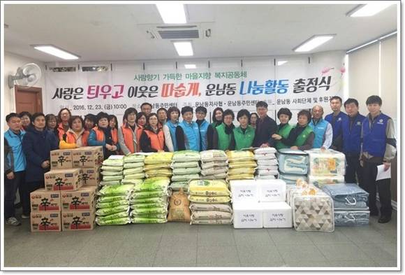 [프라임경제] 광주광역시 광산구 운남동(동장 김팔용) 주민들이 십시일반 모은 성금과 물품으로 크리스마스를 앞두고 '따뜻한 겨울나기, 사랑 틔움 나눔 주간' 행사를 23일 열었다.