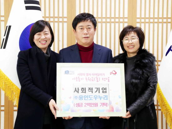이날 성금을 건네 받은 정찬민 용인시장 역시 "어려운 경제 여건에도 불구하고 따로 기탁금을 마련한 용인도우누리 직원들에게 감사를 전한다"며 "사회적기업이 안정적으로 성장할 수 있도록 지원을 아끼지 않겠다"고 덧붙였다.