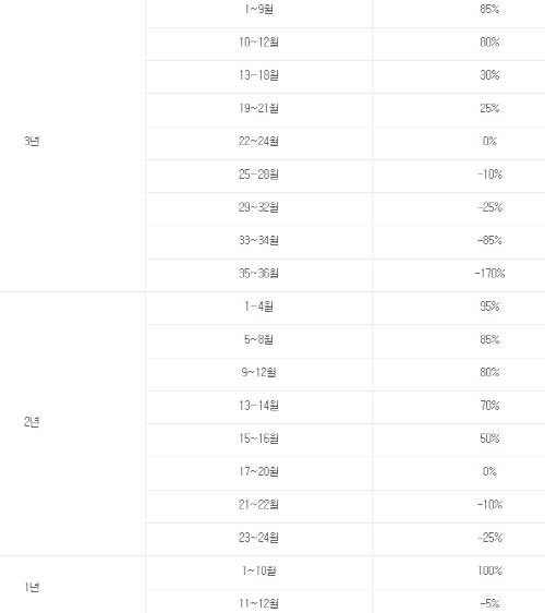 단, 이는 3년 약정을 기준으로 한 할인금액으로 1년만 약정할 경우 3년 약정 할인금액의 25%, 2년 약정할 경우 3년 약정할인금액의 50%만 할인받을 수 있다.