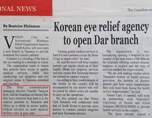 풍토병이 많은 아프리카 상황을 고려, 무료 개안수술 주선 등에도 나서고 있다. 현지 언론 '가디언(www.ippmedia.com)' 등에도 소개돼 이름이 제법 알려지게 됐다. 그런 만큼 그를 돕기 위한 손길도 늘어났다고. 그는 '신바람이 난다'면서 웃었다. 그가 교장으로 활동하고 있는 한글학교에 전우형 탄자니아 코트라 관장 등 관련기구 종사자들이 특강 강사로 나서기도 했다.