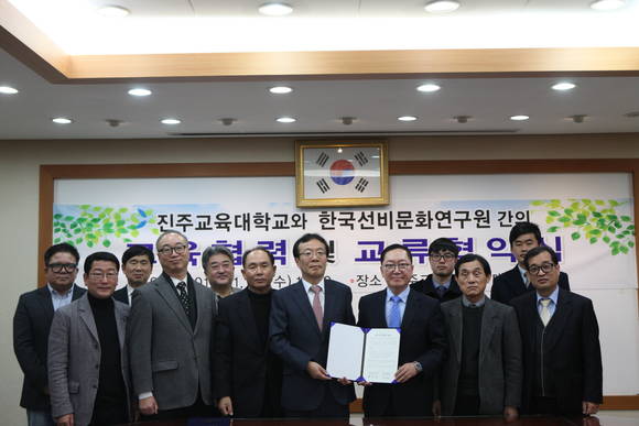 이날 업무협약은 청렴정신 연구기관인 한국선비문화연구원과 초등교사 양성기관인 진주교육대학교가 인성교육 활성화를 통한 지역사회 교육발전을 위해 마련됐다.