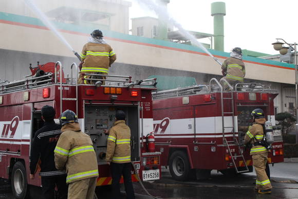 이날 하남공단 소재 세방전지에서 관계자를 대상으로 소화기, 옥내 소화전 사용법 및 위험물 화재 시 대응 요령 등의 교육을 가졌다.