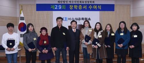 10일 오후 여수상공회의소 대회의실에서 가진 수여식에서 지역 내 고등학생과 대학생 110명에게 1억2000여만원의 장학금이 전달됐다. 고등학생은 50만원의 장학금, 대학생 중 학업성적우수․저소득자녀․농어촌자녀 장학생 등에는 200만원이 지급됐다.