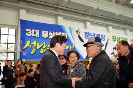 또 청년배당과 관련, 성남시에서 청년들을 지원하는 것에 대해 부정적인 의견을 밝힌 시민의 질의에 대해서는 "청년배당은 논란이 많지만 감수하고 하는 일"이라며 "성남시 복지예산 가운데 노인 예산은 15%지만 청년 예산은 2%가 안 된다"고 말했다.