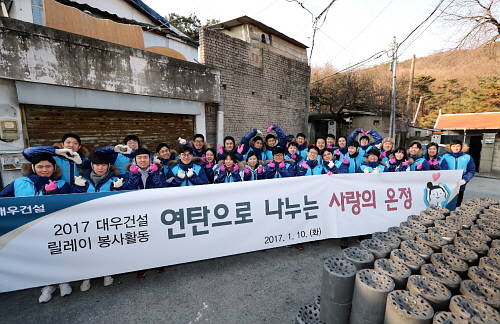 대우건설은 2011년부터 매년 서울연탄은행을 통해 연탄을 기부하고 서울시 중계동 104마을 등에서 연탄배달 봉사활동을 진행 중이다.