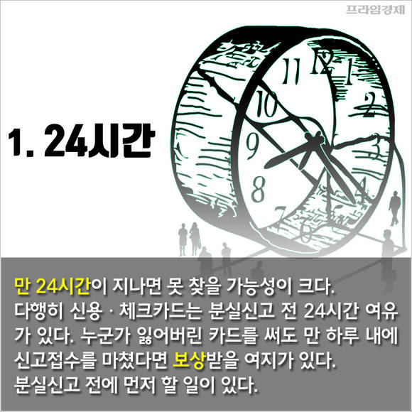 만 24시간이 지나서까지 지갑을 못 찾았다면 찾을 확률은 극히 낮아진다. 다행히 신용·체크카드는 분실신고를 하기까지 24시간의 여유가 있다. 누군가 잃어버린 카드를 써도 신고가 접수되기 전 24시간 내 사용분은 보상받을 여지가 있다.