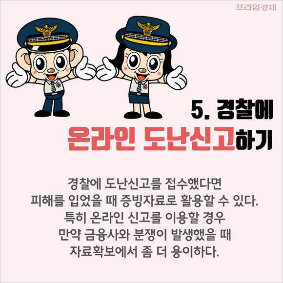 신분증 재발급 절차도 중요하다. 운전면허증의 경우 약간의 수수료를 내면 방문 없이 온라인으로 발급받을 수 있다. 또한 경찰에 도난신고를 접수하면 명의도용 등 피해를 입었을 때 증빙자료로 활용할 수 있다. 특히 온라인 신고창구를 이용하면 금융사와 분쟁이 발생했을 때 자료 확보가 좀 더 용이하다.