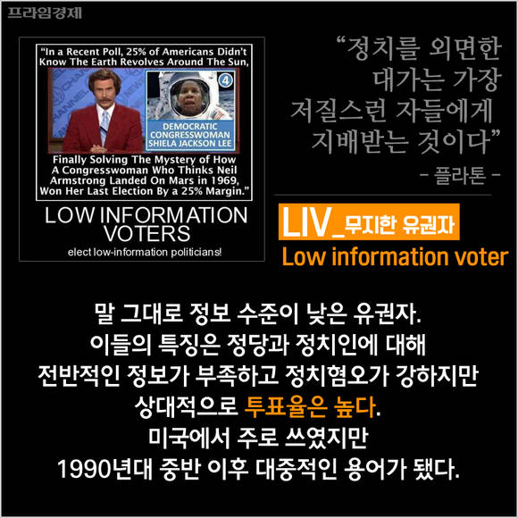 정보 수준이 낮은 유권자를 말한다. 이들은 정당과 정치인에 대해 전반적으로 정보가 부족하고 강한 정치혐오를 드러내지만 상대적으로 투표율이 높은 게 특징이다. 미국에서 주로 쓰인 용어로 1990년대 중반 이후 대중적인 용어가 됐다.
