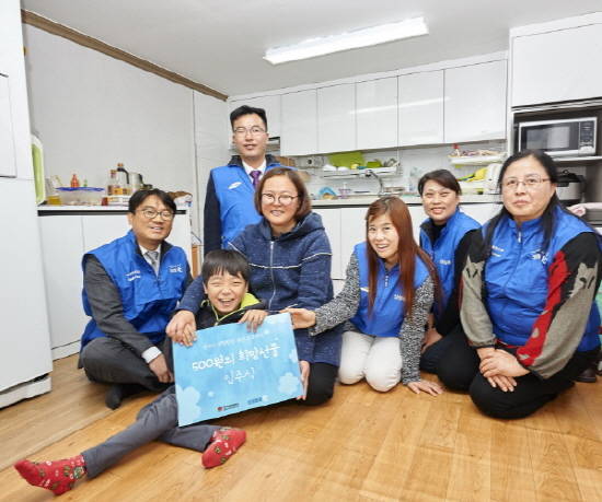 그래서 '500원의 희망선물'로 김씨부부의 안방과 거실에 벽쪽으로 붙어서 고정되어 있는 가구인 '붙박이장'과 앉아서도 쉽게 이용할 수 있는 낮은 수납장을 만들어 주었어요. 또 멀리서도 불을 끄고 켤 수 있도록 버튼만 누르면 되는 리모컨을 만들어 주었어요. 화장실에는 벽에 보조손잡이를 설치해 안전하게 이용할 수 있도록 했어요.