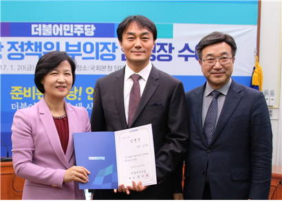 김 예비후보는 지난 20일 오후 국회 본청 더불어민주당 대표 회의실에서 69명의 정책위 부의장들이 참여한 가운데 추미애 당 대표로부터 원내 신임 정책위원회 부의장 임명장을 받았다.