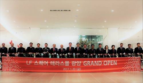 [프라임경제] LF스퀘어 테라스몰 광양점이 지난 20일 정식개장했다. 이날 개장식에는 정현복 광양시장이 관계자들과 함께 테이프 컷팅에 참여했다.