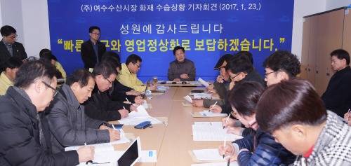 주 시장은 "22일까지 여수시민들과 전국 각지에서 보내주신 성금 18억여 원과 앞으로 지급될 시장 건물 화재보험금은 상인들과 합의한 대로 시설복구와 시장 활성화에 사용하겠다"고 방향을 밝혔다.
