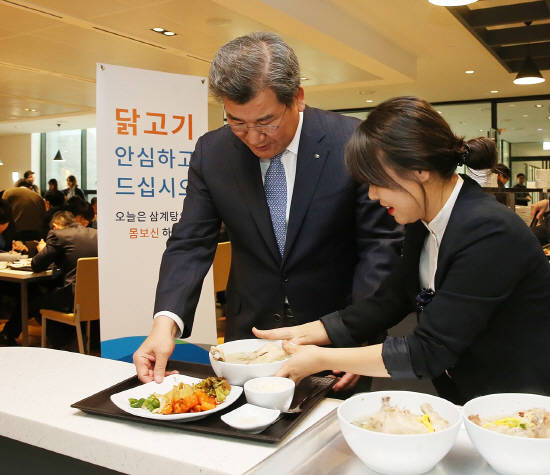24일 오찬에는 박인규 은행장이 직원들과 함께 구내식당에서 삼계탕을 먹는 '삼계탕 몸보신 Day’행사를 실시해 전 직원에게 삼계탕을 무료로 제공하며 닭고기 소비 촉진을 격려했다.