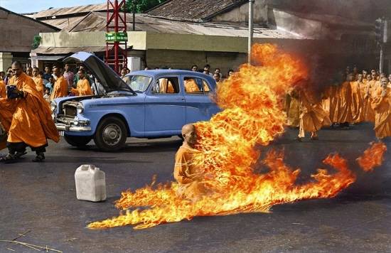 틱광둑이 화염 속에서도 표정의 일그러짐 없이 가부좌를 풀지 않은 상태로 조용히 죽음에 이르는 모습은 큰 파장을 일으키게 됩니다.