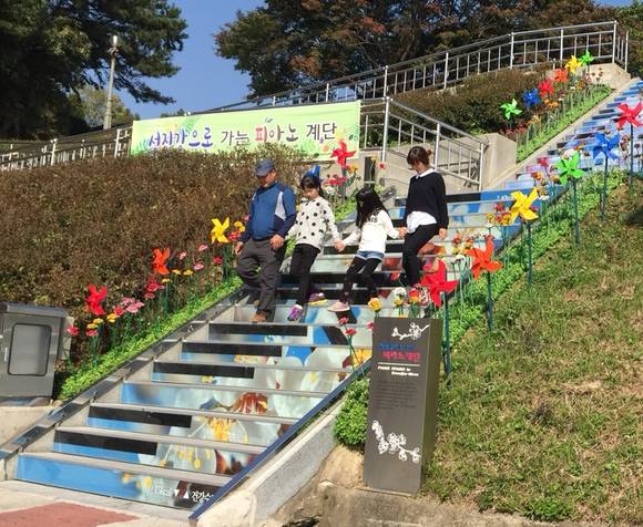 남해고속도로 섬진강휴게소(부산방향)는 무지개색 우산으로 천장이 수 놓아진 전망대에서 시원하게 펼쳐진 섬진강 줄기를 내려다볼 수 있다. 전망대로 가는 계단을 오르면 피아노 음계가 차례로 울려 퍼지면서 아름다운 조명이 켜진다.