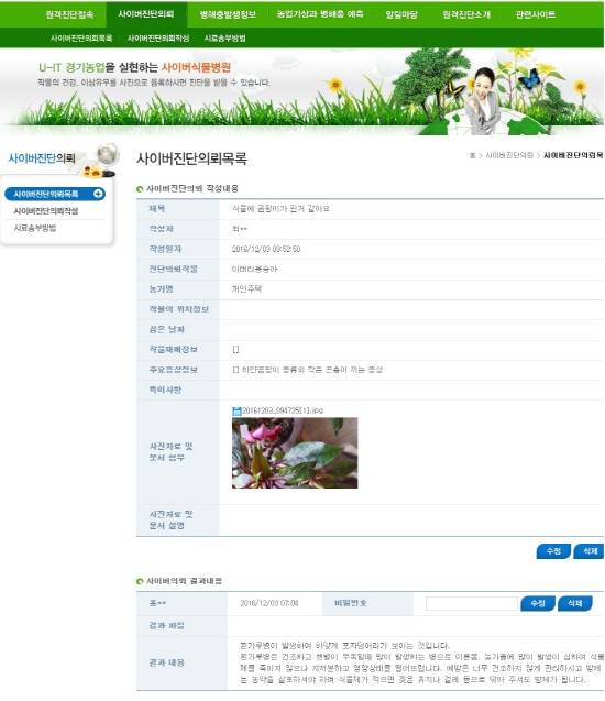 식물에 대해 상담이 필요한 사람은 누구든지 컴퓨터나 스마트폰으로 경기 사이버식물병원 사이트(www.plant119.kr)에 들어와서 간단하게 나의 이름과 전화번호와 주소 등 연락할 곳을 알려주는데 허락을 하면 돈을 주지 않아도 공짜로 상담을 받을 수 있어요.