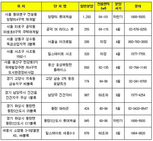 먼저 롯데건설은 서울 동대문구 전농동 청량리4구역을 재개발하는 청량리 롯데캐슬(가칭)을 하반기 분양 예정이다.