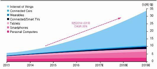 김윤서 KTB투자증권 연구원은 "IoT 시장은 2021년 기준 600억 달러 규모까지 빠르게 성장할 것으로 예상된다"고 제언했다.