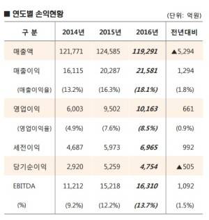 이번 사상 최대 영업이익을 이뤄내는 데에는 △타이어코드 및 차량용 매트 판매 확대 △폴리프로필렌(PP)·NF3 등의 수익성 확대 △중공업 부문의 실적 개선 △건설 부문의 경영효율성 극대화 등이 큰 역할을 했다.