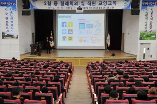 이는 스마트폰의 업무 활용도가 높아짐에 따라 행정기관 공무원 간 소통과 업무 효율성을 높인 스마트 행정으로 시민과의 소통체계를 활성화하기 위해 마련된 것으로 정보화 교육 전문업체 ㈜블루에이디의 김헌기 대표를 강사로 초청해 이뤄졌다.