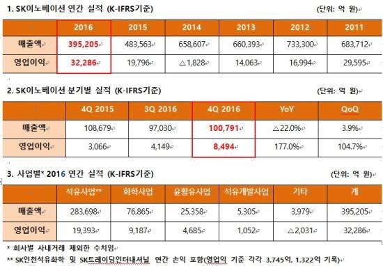 이는 사업 시작 후 사상 최고 성적으로, SK이노베이션 및 사업자회사들이 그간 추진해온 사업구조 혁신으로 인한 성과가 본격적으로 나타나기 시작한 것이라는 게 회사 측 설명이다.
