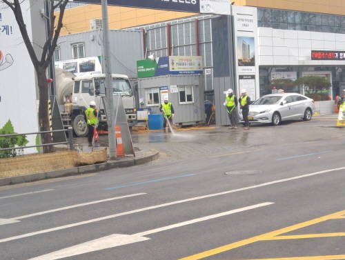 건설장비에 붙은 먼지나 오물 등을 청소하거나 비산먼지를 제거하기 위해서는 강력한 수압의 물청소가 효과적이다. 겨울에는 결빙 가능성 때문에 물뿌리기를 가급적 하지 않으나 봄을 맞아 환경을 정결하게 하는 작업이 다시 본격화된 것. 아울러 입춘을 맞아 복을 기원하는 의미도 없지 않은 것으로 풀이된다.