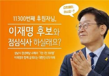 이재명 캠프는 흙수저 후원 열풍을 더욱 높이기 위한 이벤트도 마련했다. 이 후보는 1만 1300번째 후원자와 점심 식사를 할 예정이라고 밝혔다.