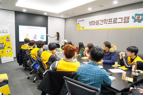 '넷마블견학프로그램'에서는 서울 구로동에 위치한 넷마블 본사 투어와 함께 국내외 사업을 개발하고 홍보하는 명예강사들로부터 국내 게임산업의 흐름과 미래전망에 대한 특강을 진행했다.