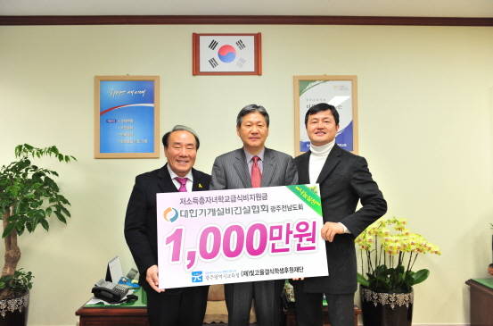 [프라임경제] 대한기계설비건설협회 광주전남도회(회장 이연풍)가 20일 (재)빛고을결식학생후원재단에 고등학교 저소득층 자녀 학교급식비 지원금 1000만 원을 쾌척했다.
