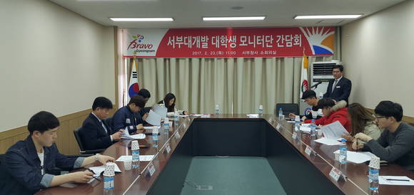 간담회 참석 학생들은 모니터단 운영 활성화를 위해 대학․팀별 소모임을 통한 결속력 강화, 온라인 카페와 SNS(소셜네트워크서비스)를 활용한 다양한 서부청사 및 서부대개발 홍보 방안을 제시했다.