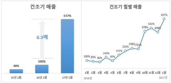 이 같은 의류건조기의 인기는 주상복합, 발코니 확장 등 주거환경 변화와 미세먼지 등의 환경적 요인으로 인해 실내에서 옷을 말리는 경우가 많아졌기 때문인 것으로 풀이된다.