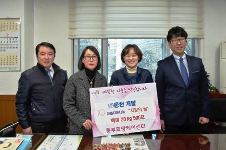 한편, (주)동천개발은 매년 어려운 이웃을 위해 남양주시청에 사랑의 쌀 백미 20kg 500포를 전달하기로 약속했다.