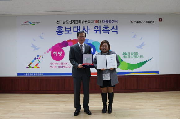 이에 씨는 "20대 국선에서 첫 홍보대사를 맡은 후 다시 전남선관위 홍보대사가 되어 기쁘다. 유권자가 선거에 관심을 갖고 참여할 수 있도록 열심히 활동해, 선거가 밝고 깨끗해지도록 작은 힘이나마 최선을 다하겠다"고 화답했다.