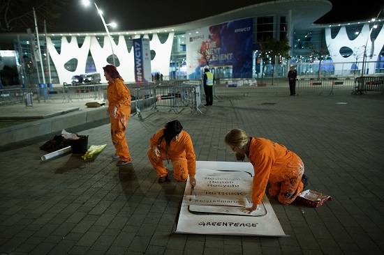[프라임경제] 그린피스는 27일(현지시간) 스페인 바르셀로나에서 개최된 '모바일월드콩그레스(MWC)' 2017 현장에서 이색 퍼포먼스를 벌였다고 밝혔다.