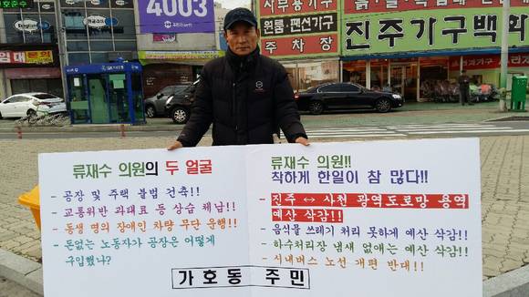 1인 피켓시위에 나선 가호동 주민 A씨는 "진주시의회가 예산삭감에 대한 대책방안이나 해결의 의지를 보이지 않고 있다"며 "작금의 사태가 해결될 때까지 1인 시위를 계속해서 이어 갈 것"이라고 밝혔다.