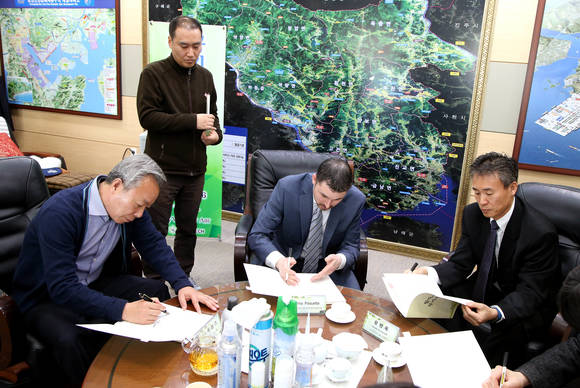 이날 계약은 윤상기 군수와 트로이 패켓 캐나다 바이탈리티 에어사 부사장과 황병욱 바이탈리티 에어 코리아 대표, 임승희 SL 바이오텍 대표가 투자계약서에 서명하고 상호 협력키로 했다.