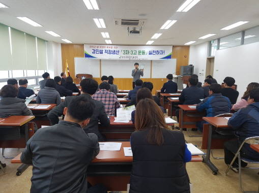 [프라임경제] 전남 강진군(군수 강진원)이 지난 7일 군농업기술센터 소회의실에서 지도·연구사와 실무원 등 전 직원 대상으로 강진군 쌀 적정생산을 위한 '3저(低)·3고(高) 운동' 의식 통일 교육을 가졌다.